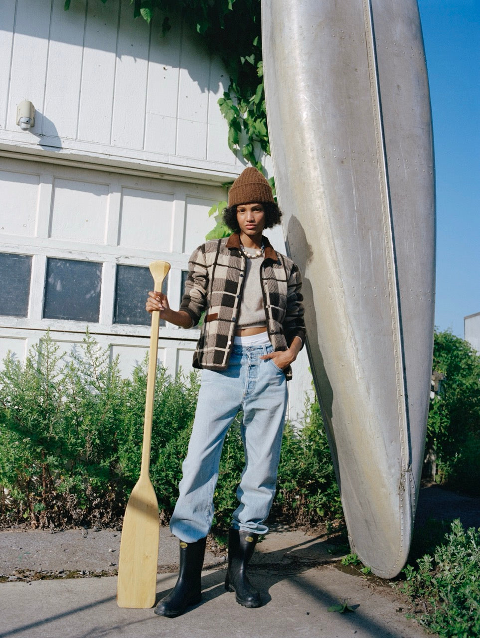 - Jacquard plaid knit design