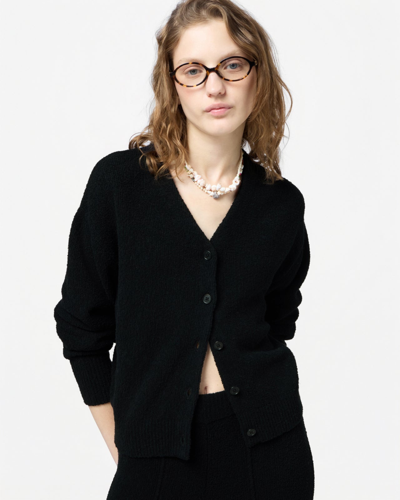 - MIDWEIGHT BOUCLE V NECK CARDIGAN