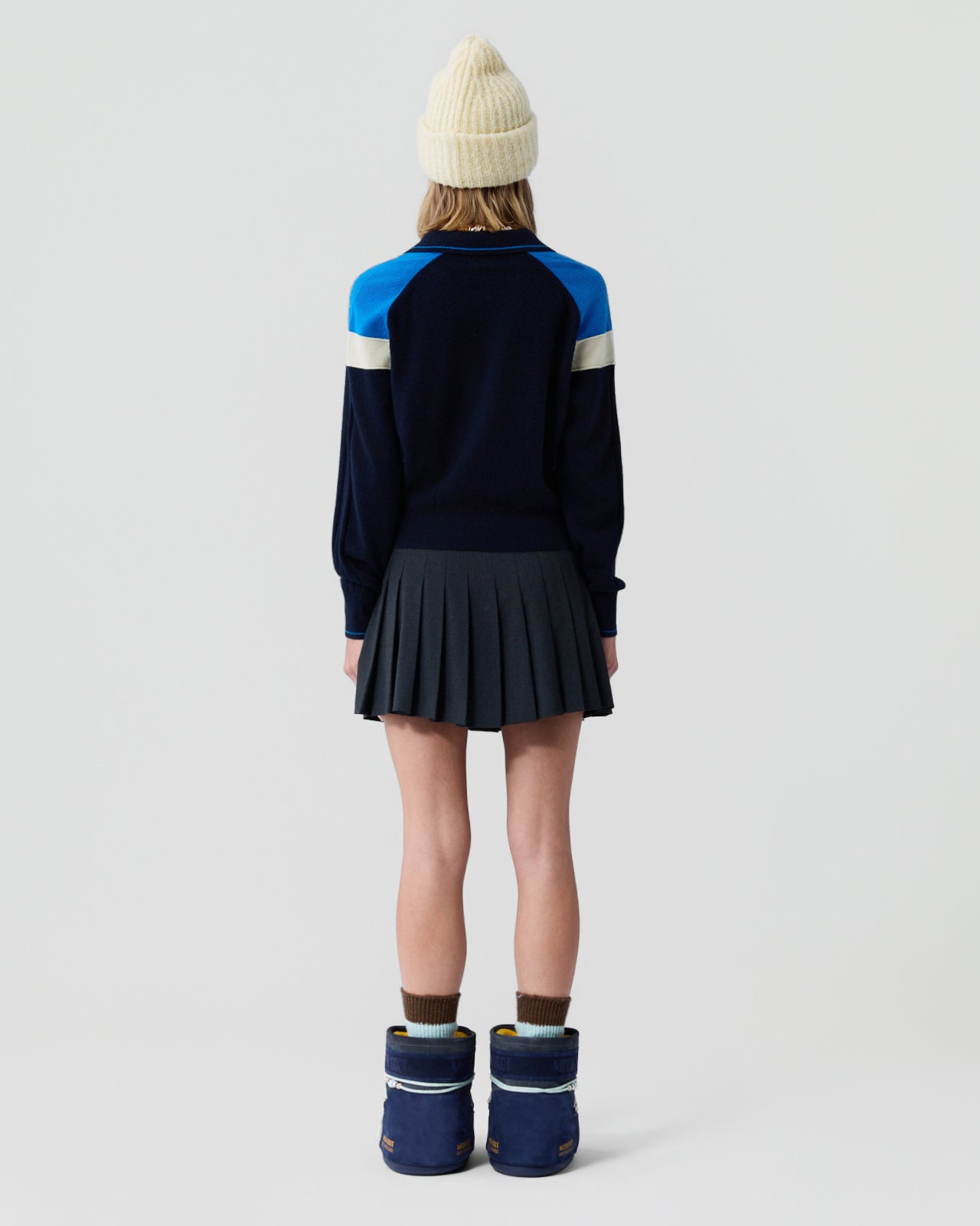 - SADDLE SHOULDER WITH COLOR BLOCK AT SHOULDER - RIB DETAIL AT CENTER SLEEVE
