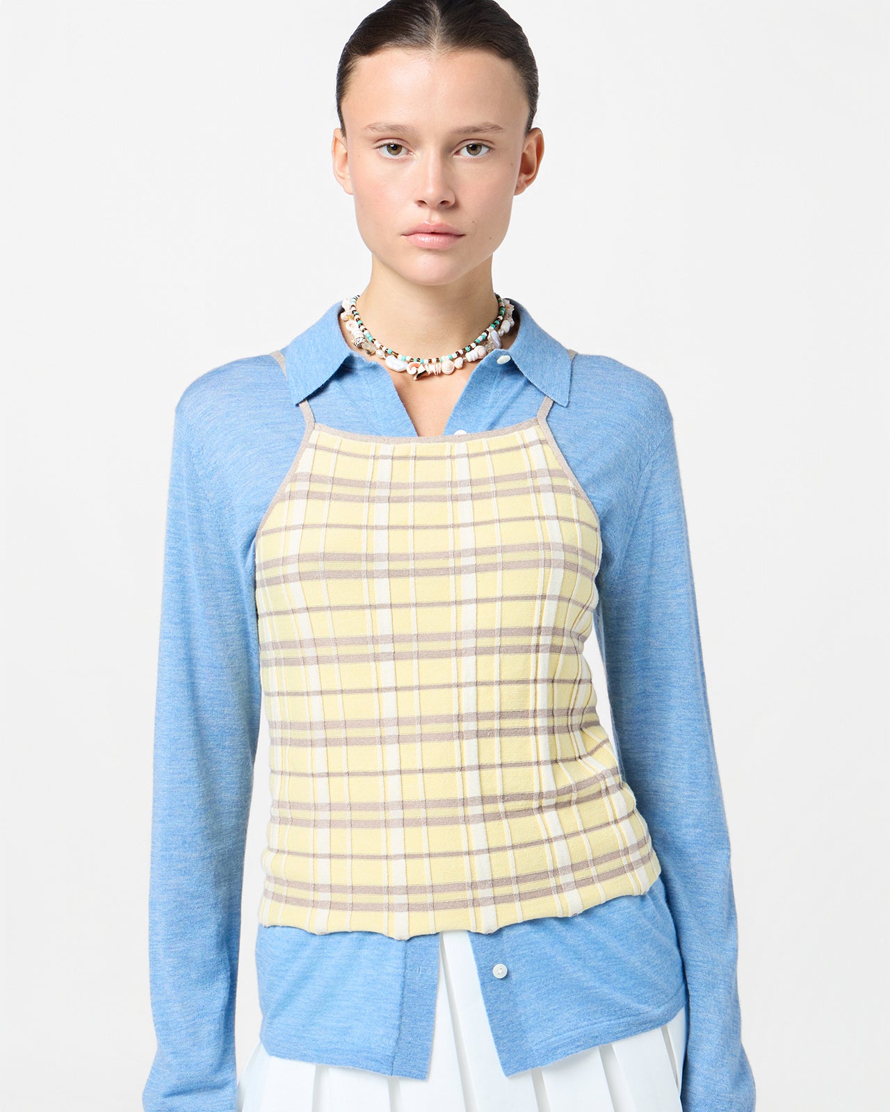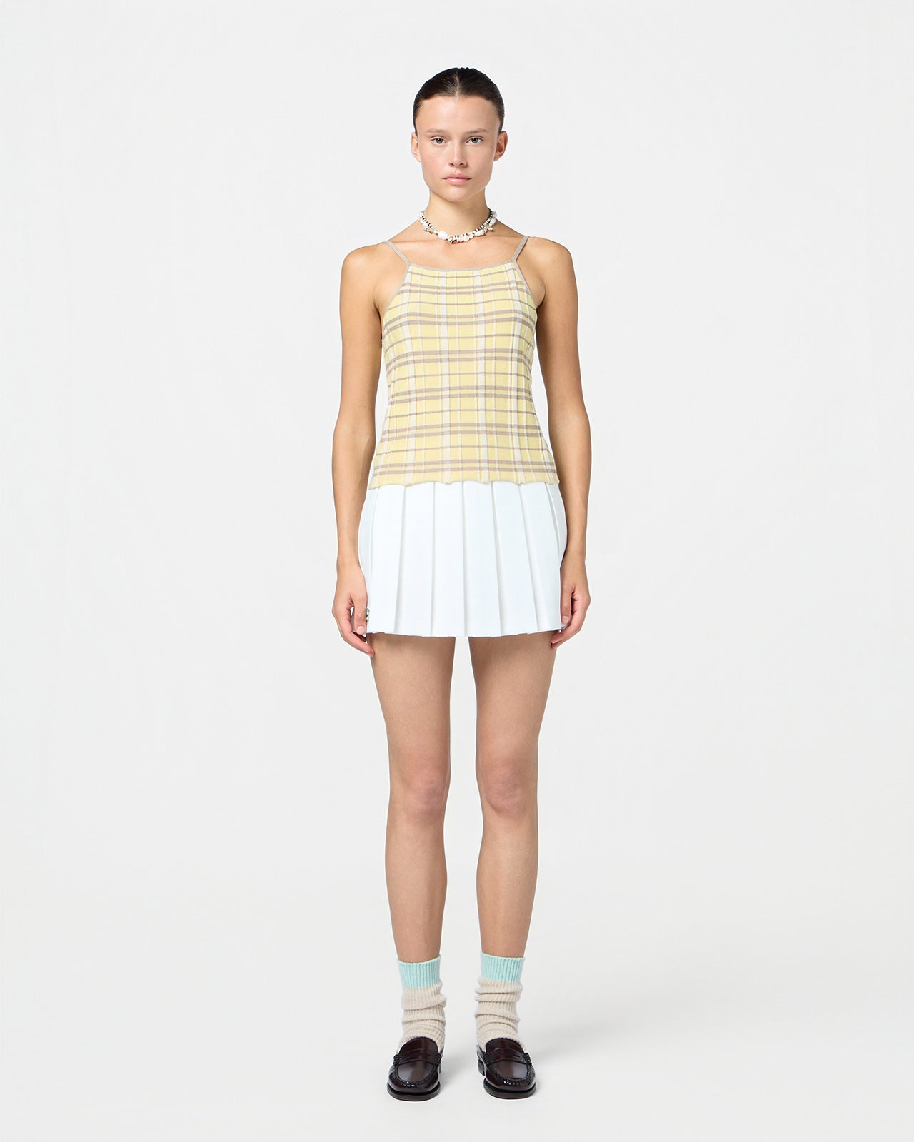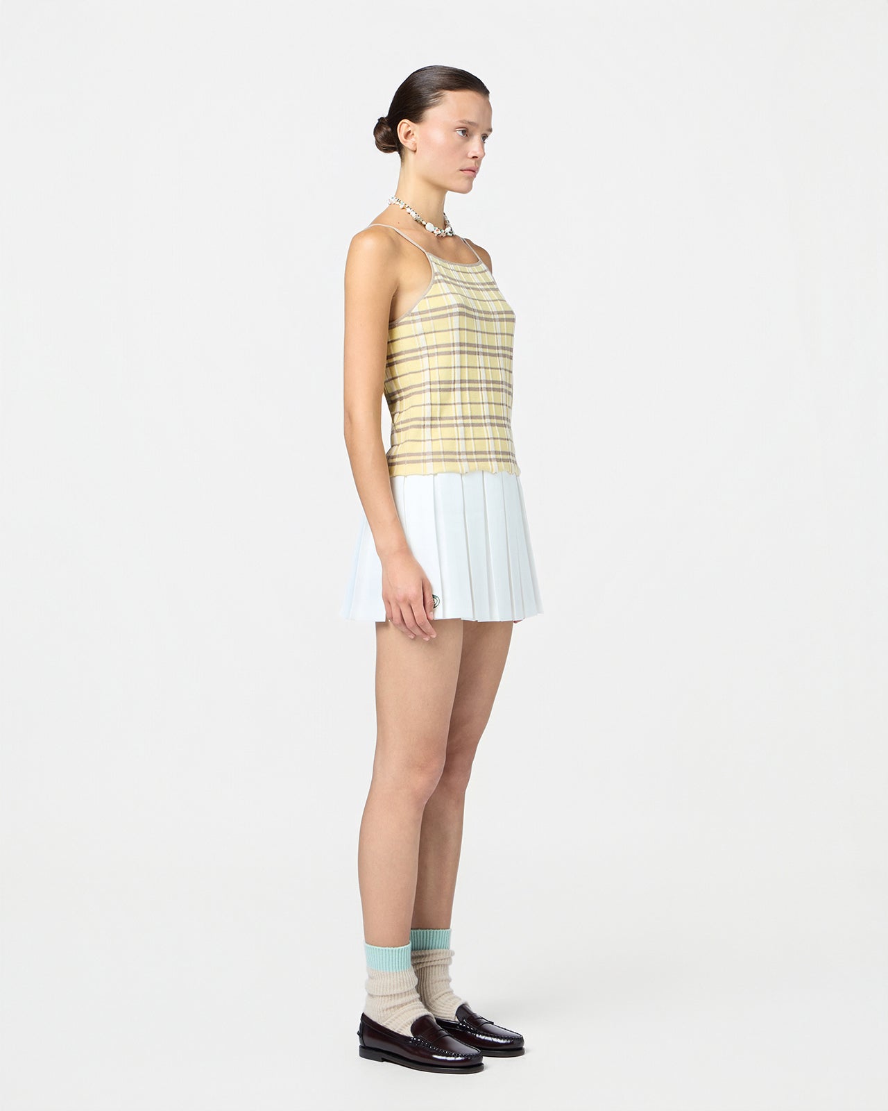 - LIGHT-WEIGHT RIB PLAID SQUARE NECK TANK