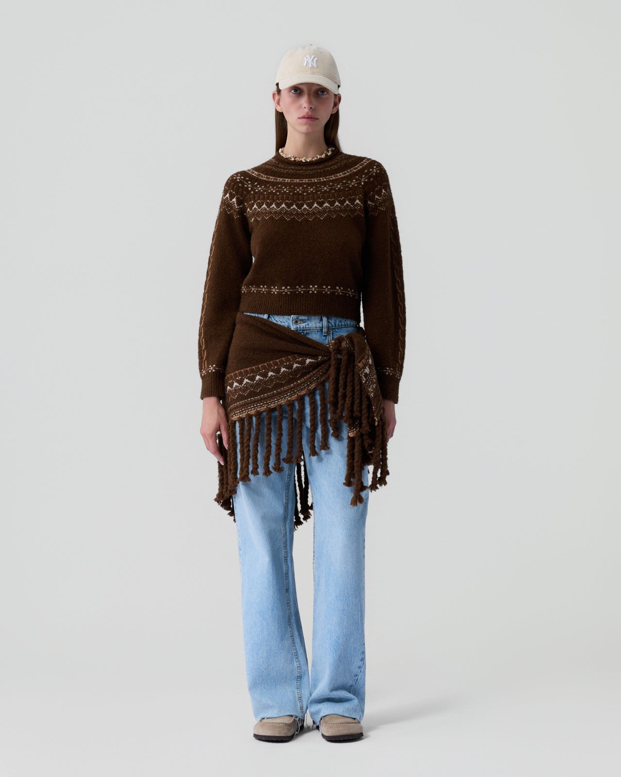 Crafted from a wool–cashmere blend and ultra-soft Cloud yarn, the Cloud Chalet Crew captures the charm of vintage alpine knits in a modern way. This women’s Fair Isle cashmere sweater has a slightly boxy silhouette that blends nostalgic patternwork with soft, cozy texture.