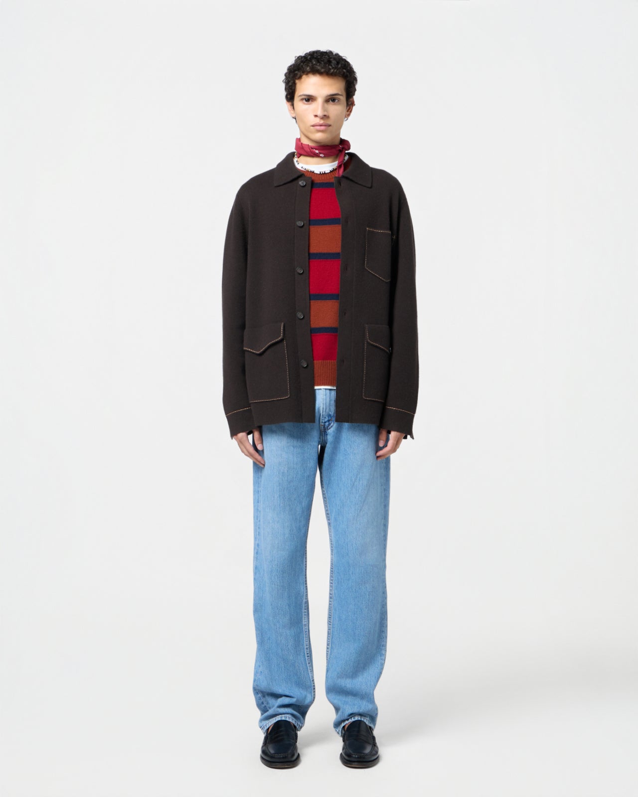 - Contrast hand topstitching at pockets and cuff