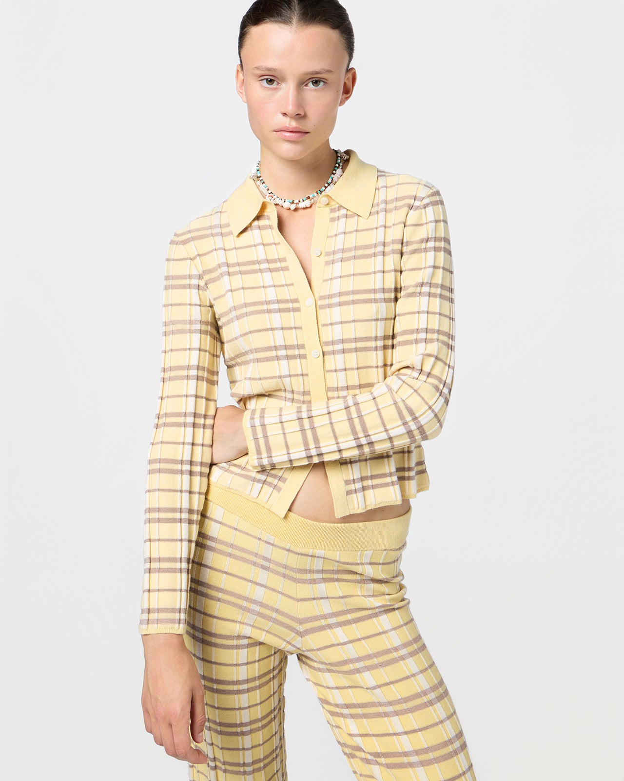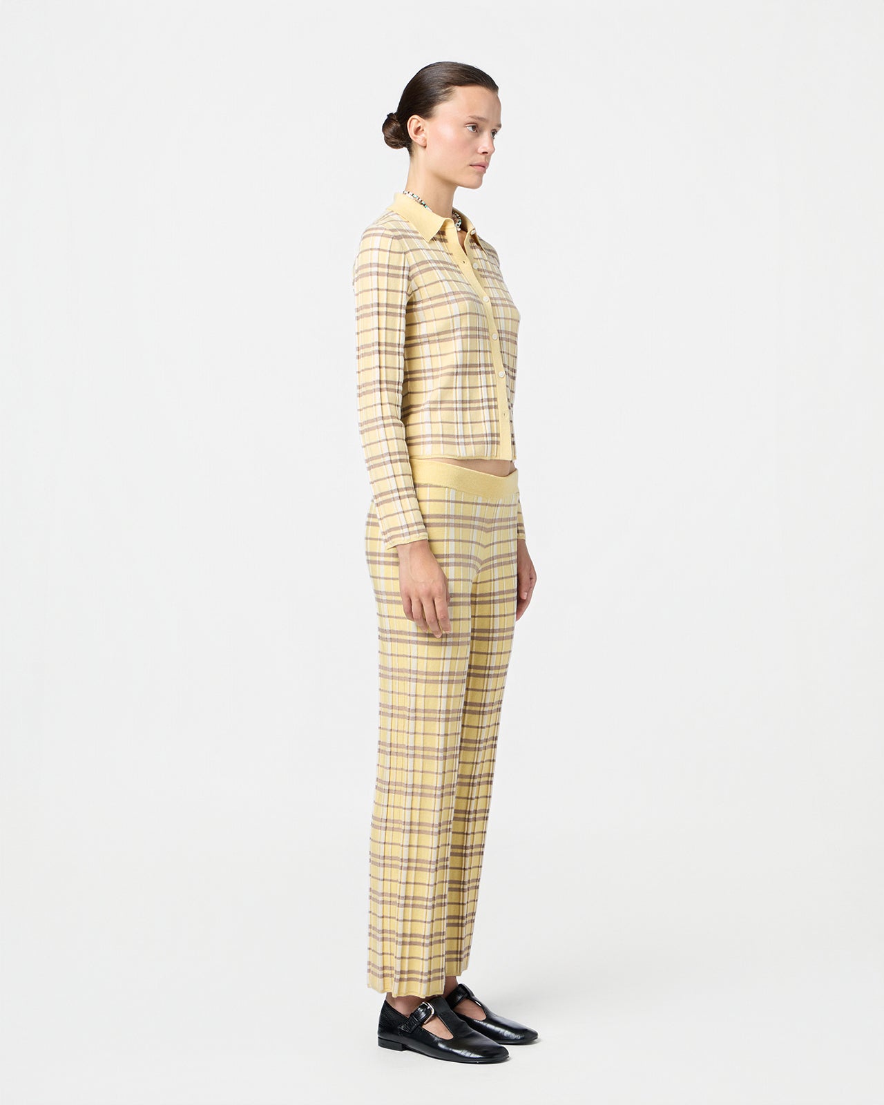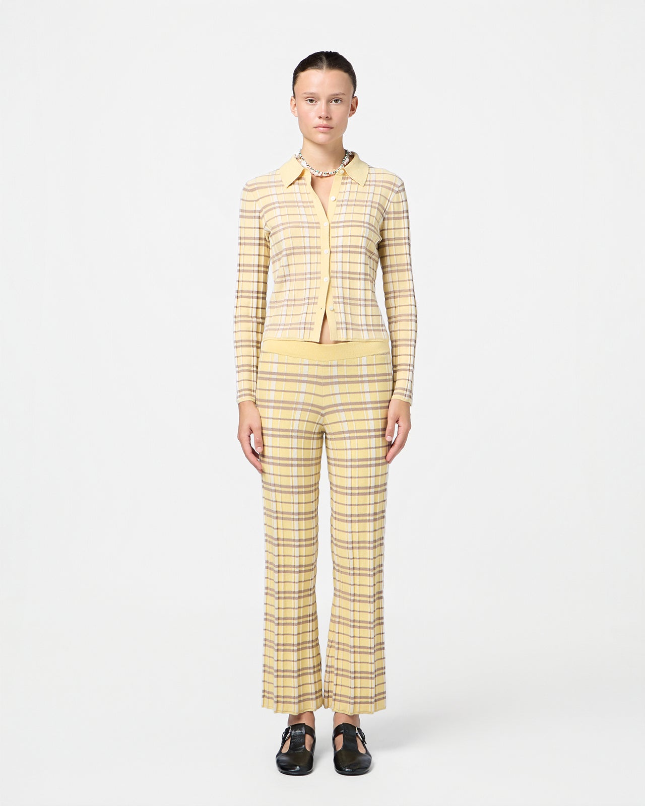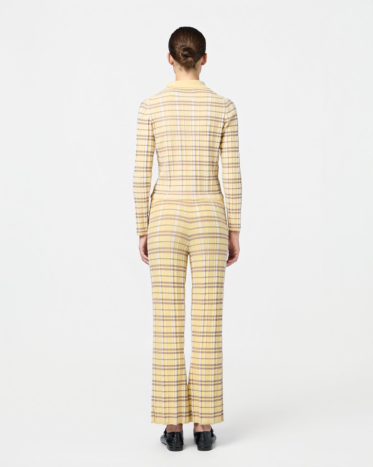 - LIGHT-WEIGHT RIB PLAID FLARE PANT