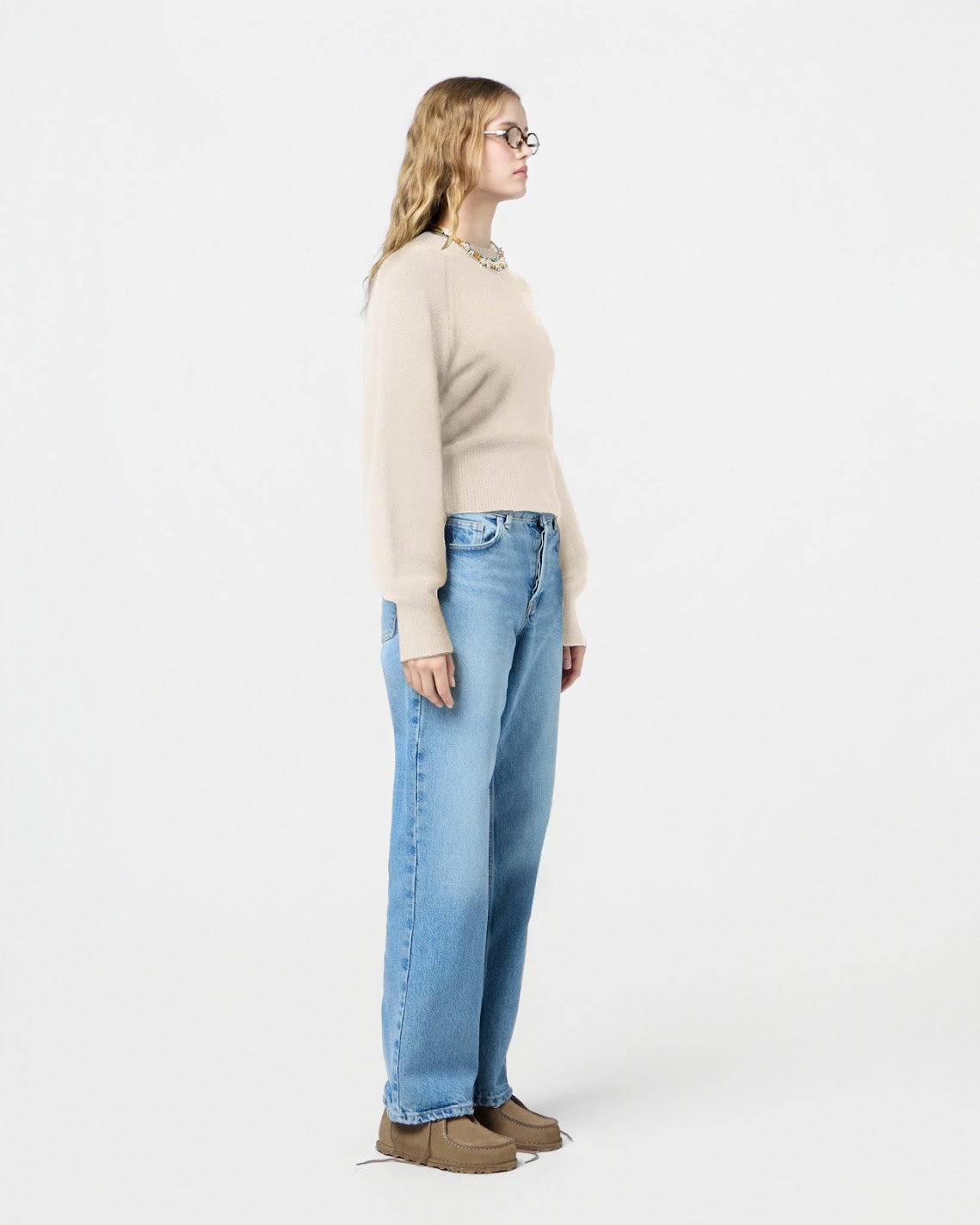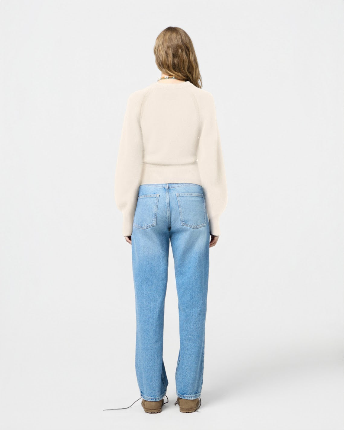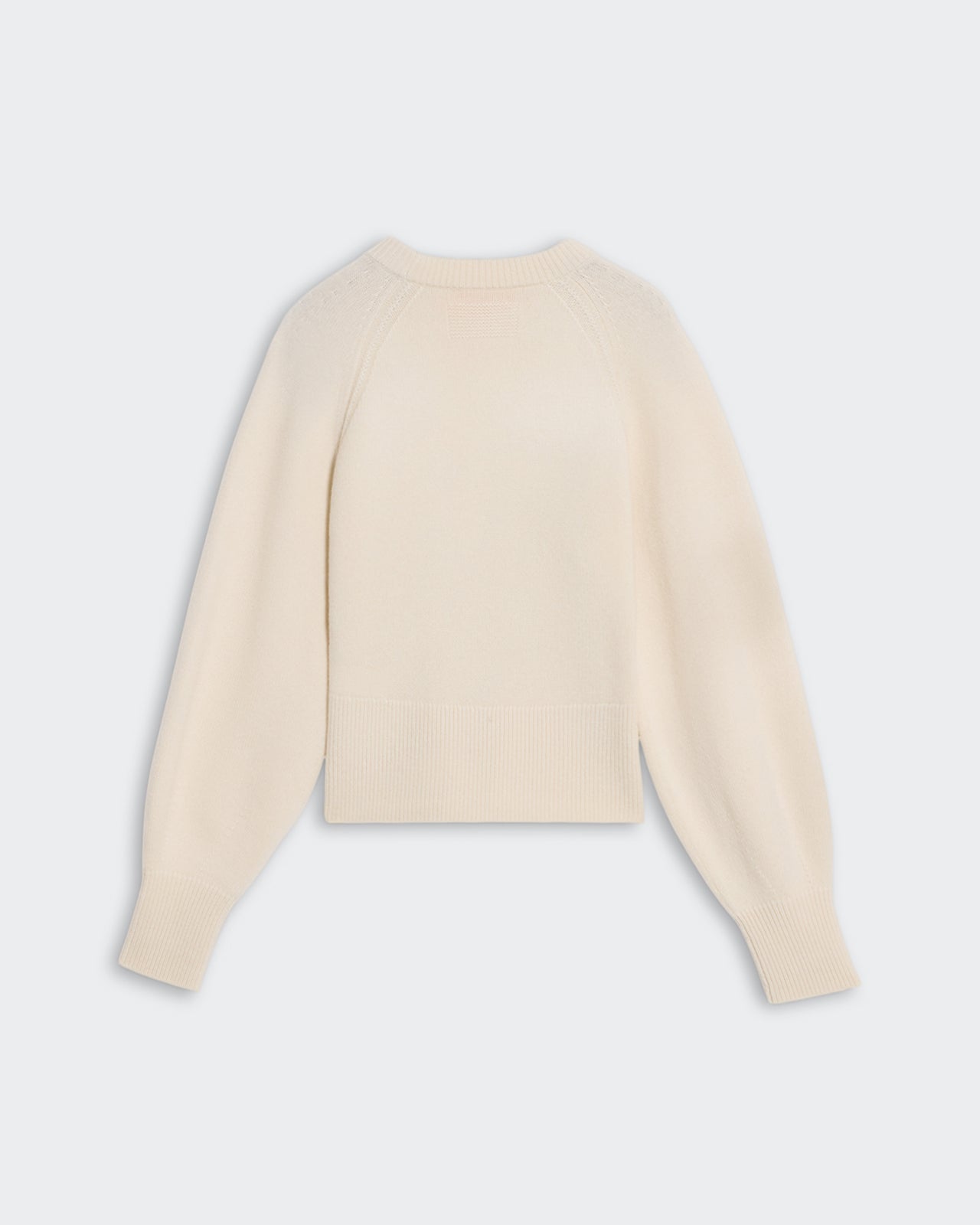 - Raglan-style sleeves with decorative tucking detail at the seams