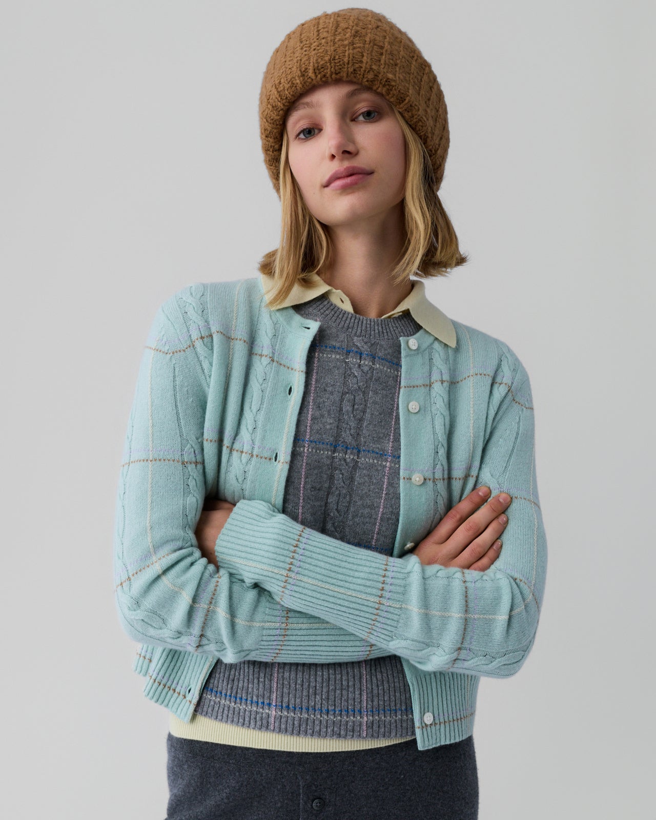 • LIGHT-WEIGHT CABLE CHECK CARDIGAN