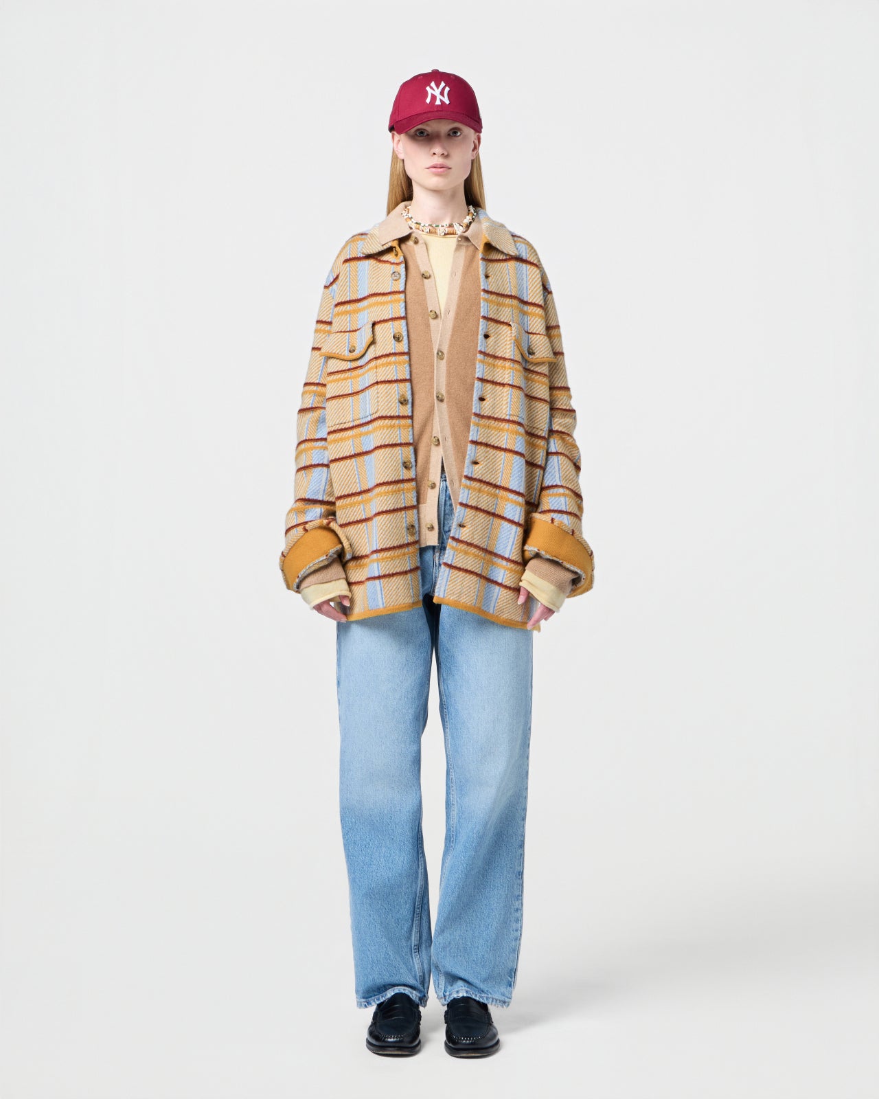 A modern take on classic Western workwear, the Plaid Work Shirt is crafted from 100% medium-weight cashmere with an intentionally oversized fit. Its colorful plaid pattern and soft texture make it the ultimate everyday layer — worn solo or over knits.