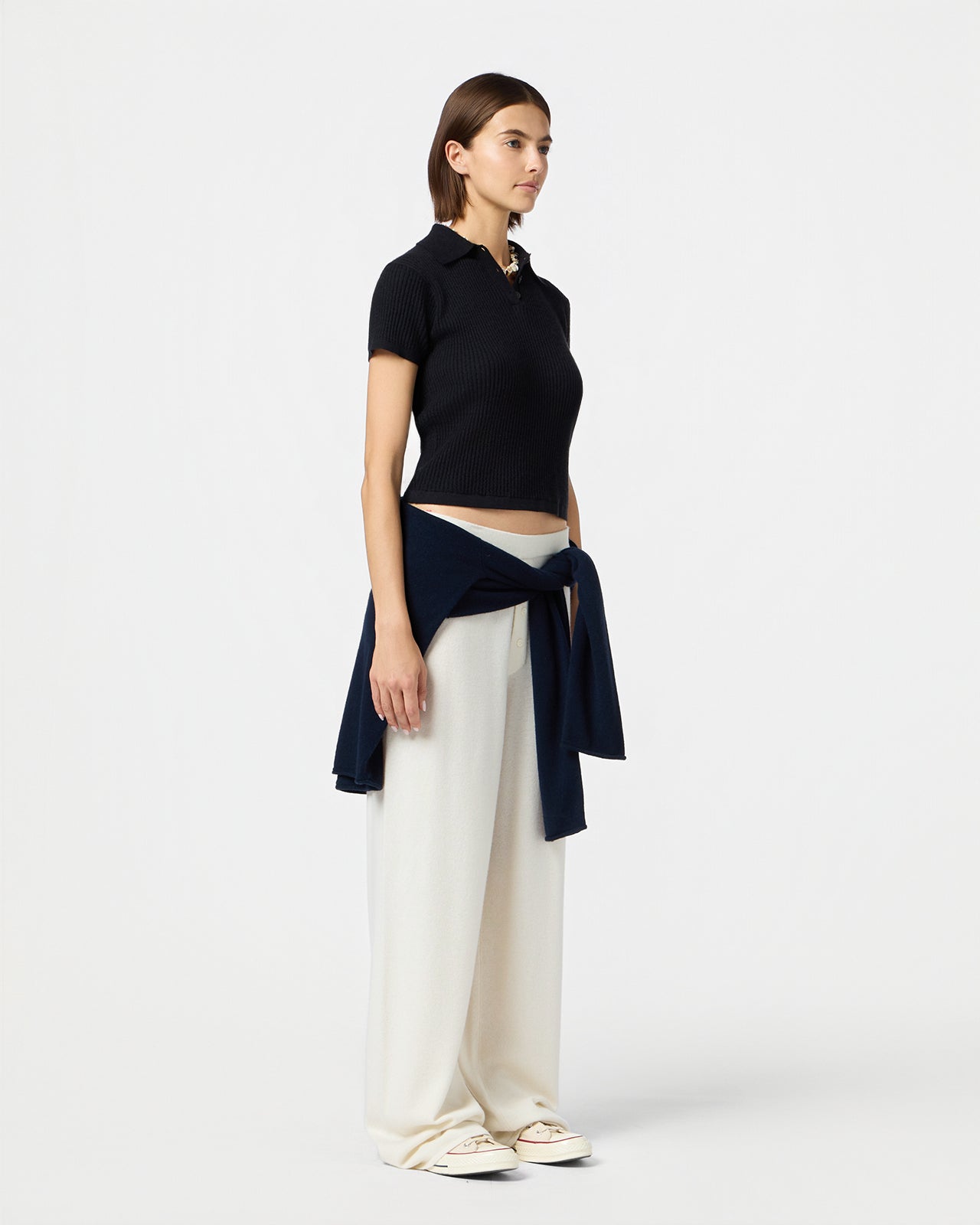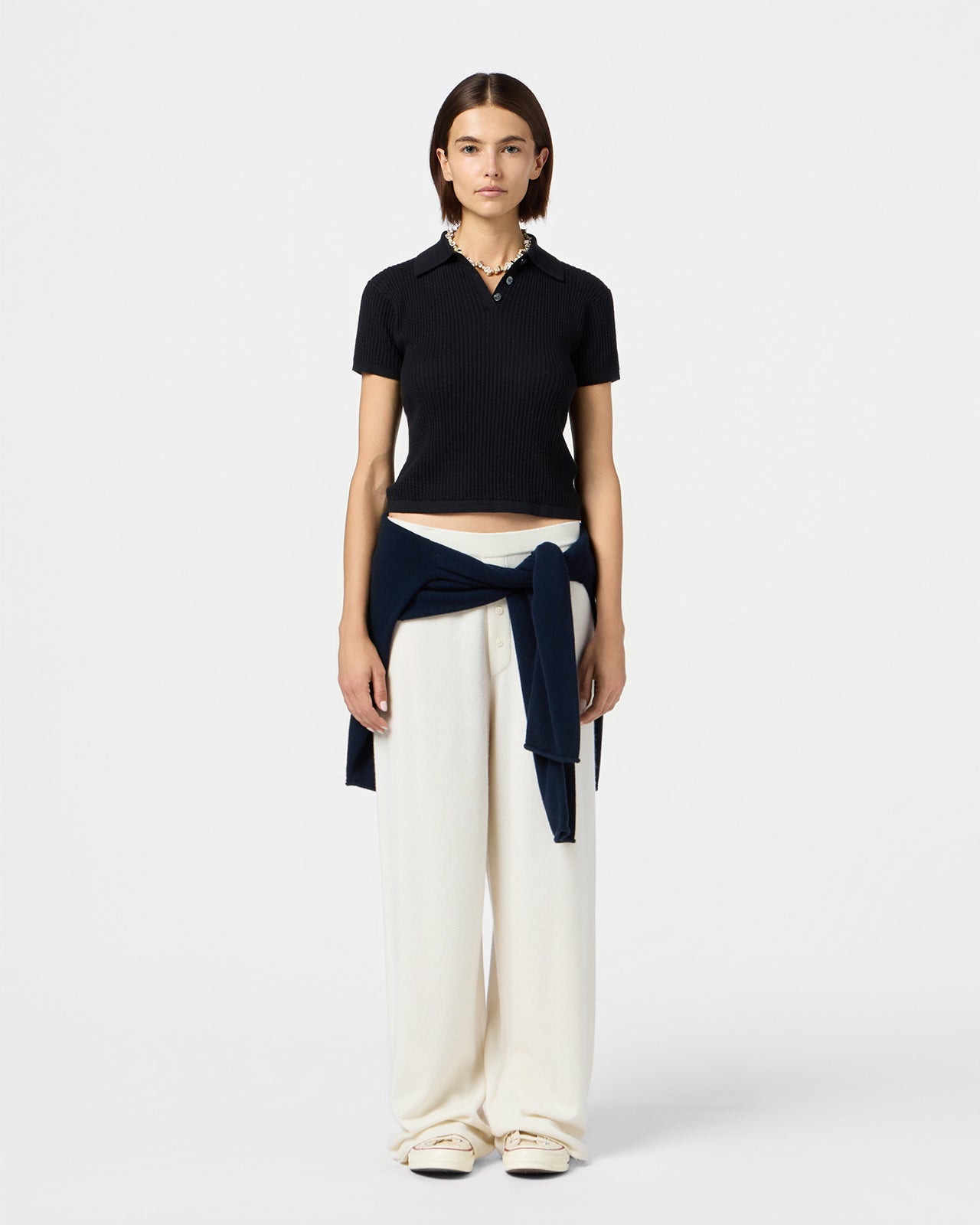 The Shrunken Polo is a core Guest In Residence cashmere style with our signature lightweight waffle knit. This women’s preppy cashmere polo sweater transitions from tailored office looks to casual weekend wear, effortlessly worn with jeans.