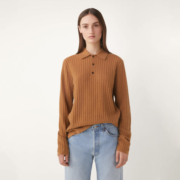 • Chestnut rib cuff beanie made from 100% premium cashmere with signature GIR branding on cuff trim, unisex medium weight