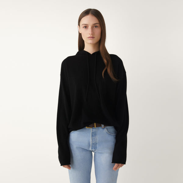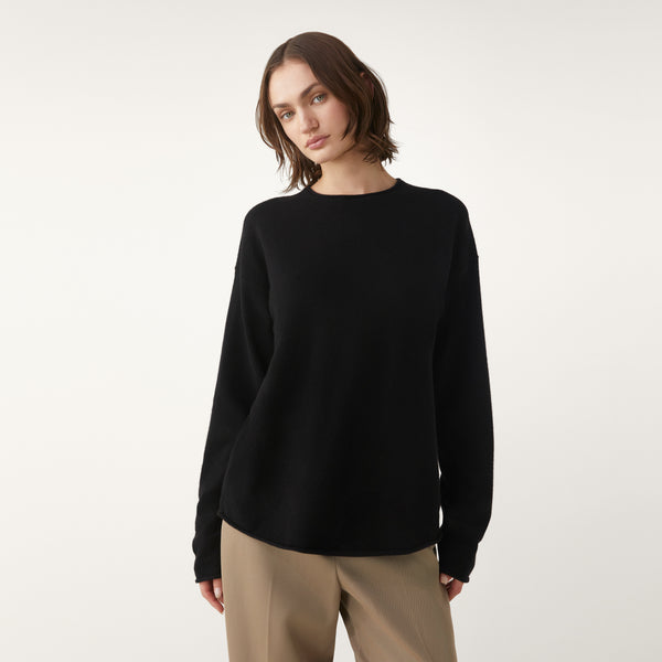 • The Big Scarf - Black, 74x19 inches lightweight 100% cashmere scarf with jersey roll hem, premium quality knit.