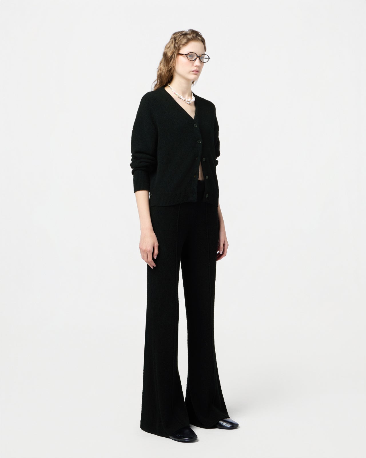 • MIDWEIGHT BOUCLE V NECK CARDIGAN