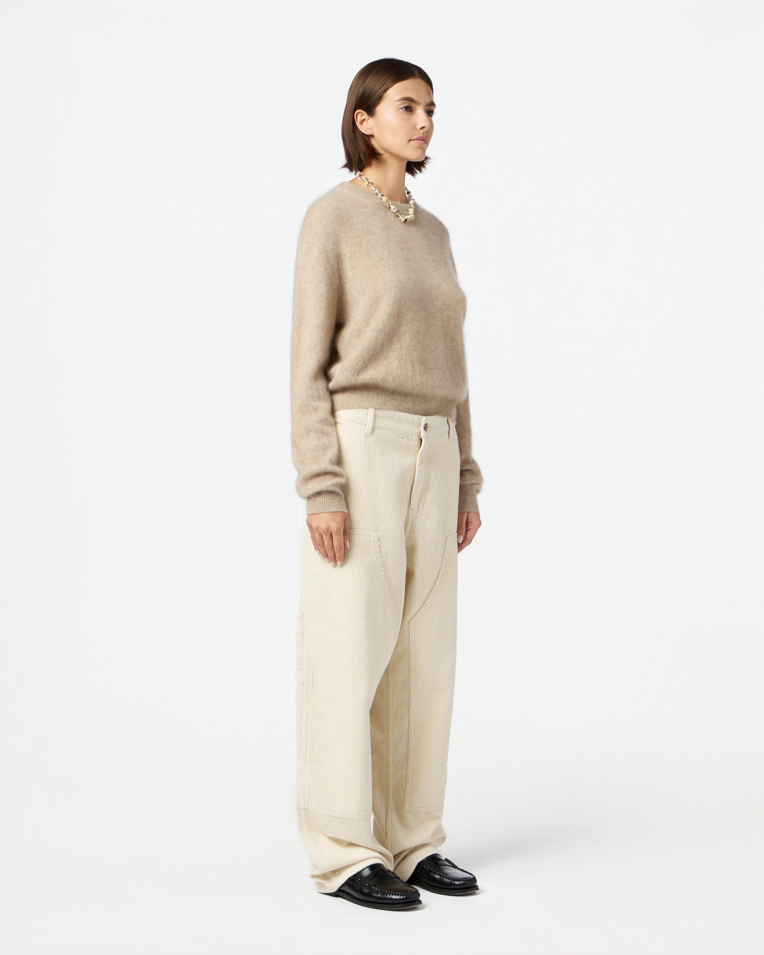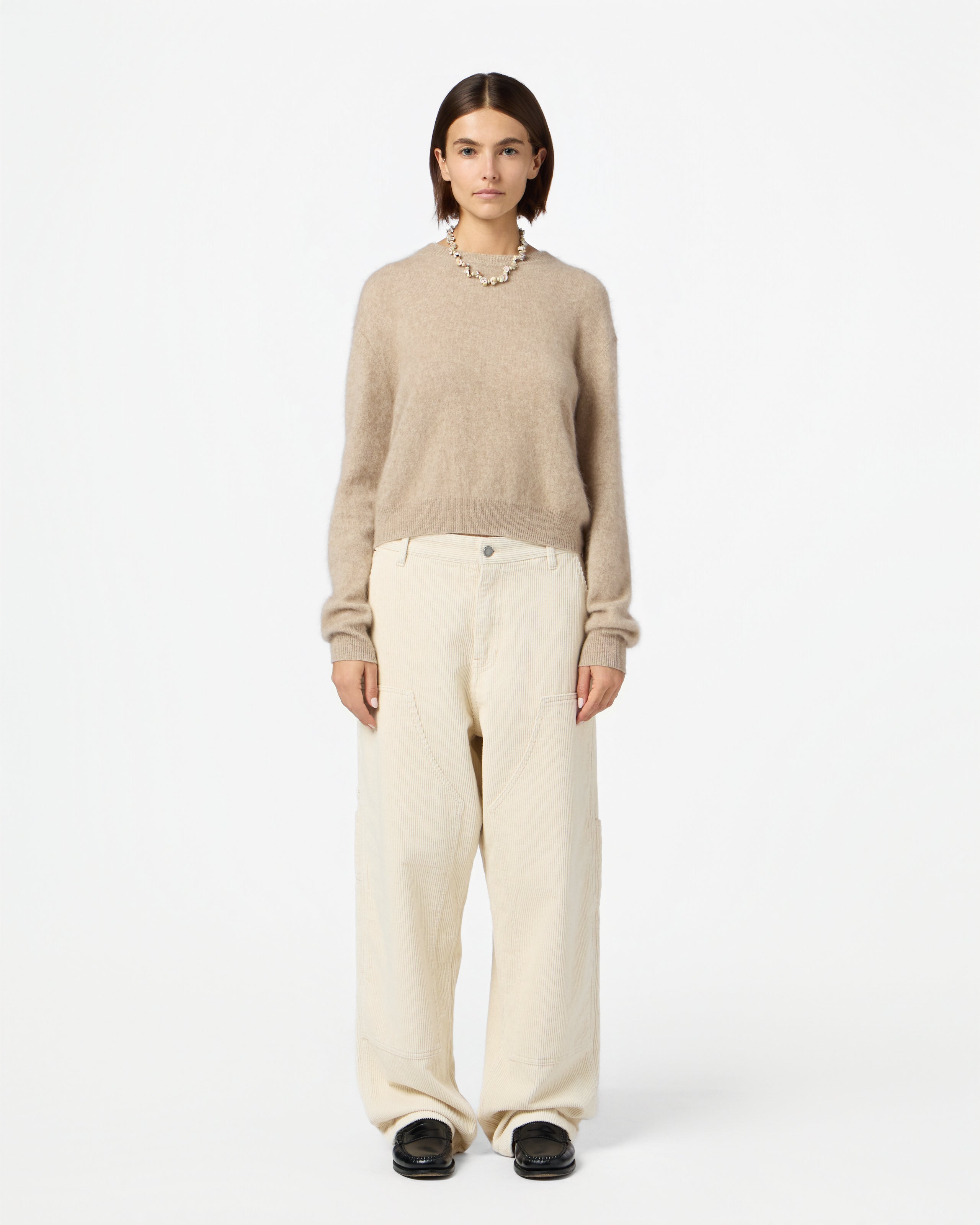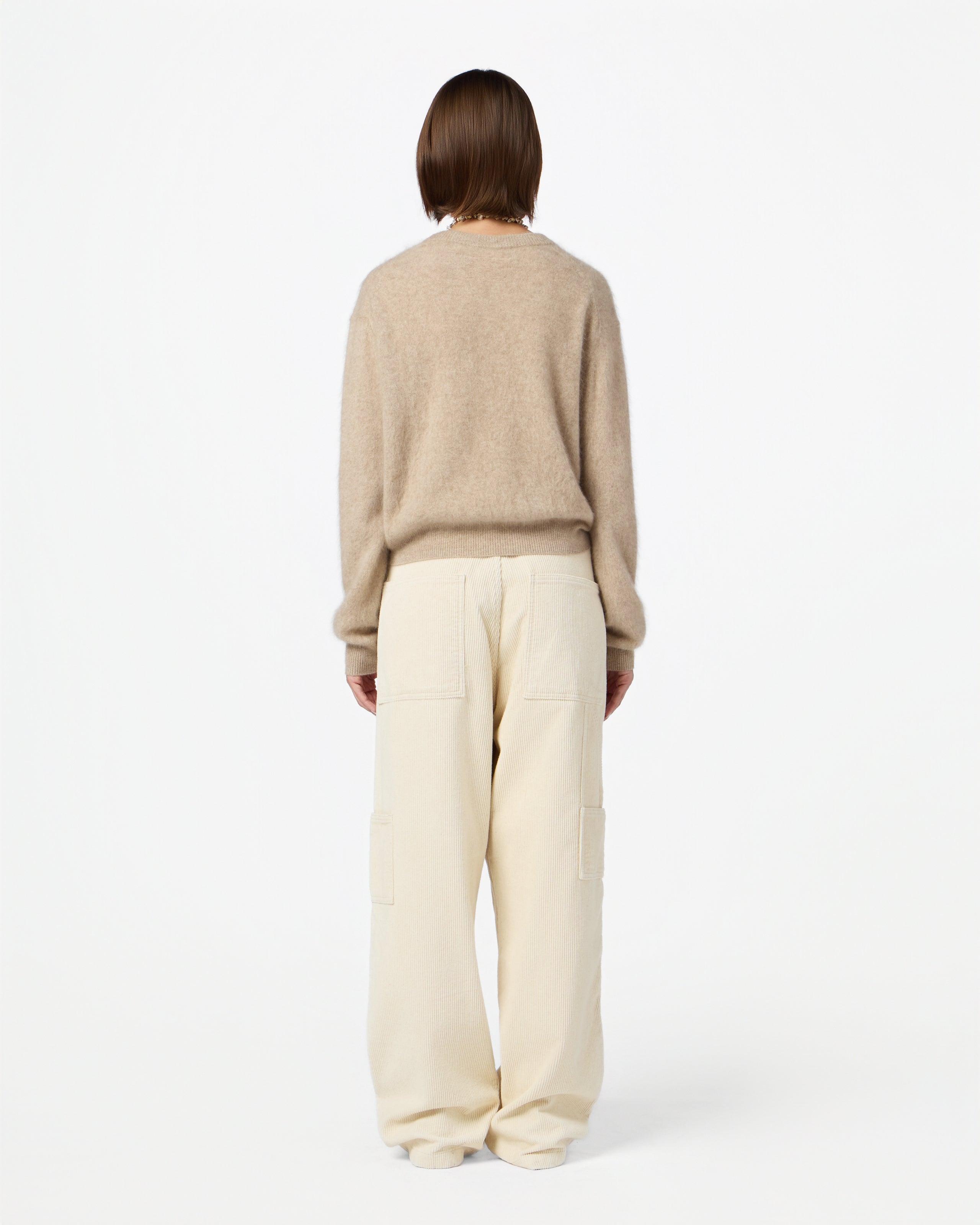This Grizzly Crew neck sweater is knit from 100% brushed cashmere with a soft, grizzly-inspired texture that is light in weight yet rich in texture. Designed with a cropped fit, this women’s cashmere crew neck is perfect for layering with denim or dresses.