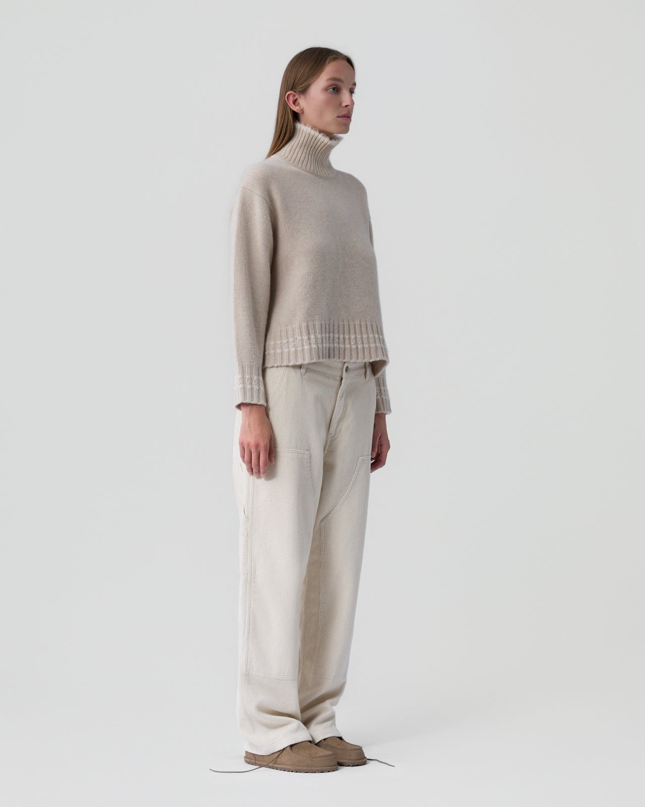 Tipped Cozy Turtleneck - Sandstone/Cream