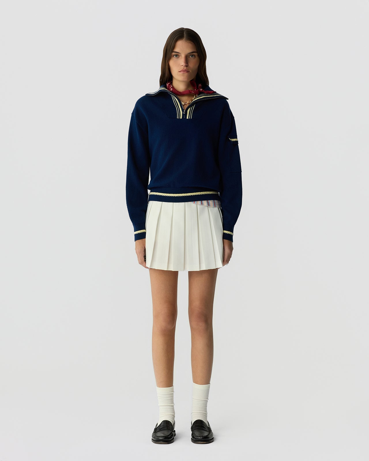 - RIB HALF-ZIP TURTLENECK WITH VERTICAL STRIPE
