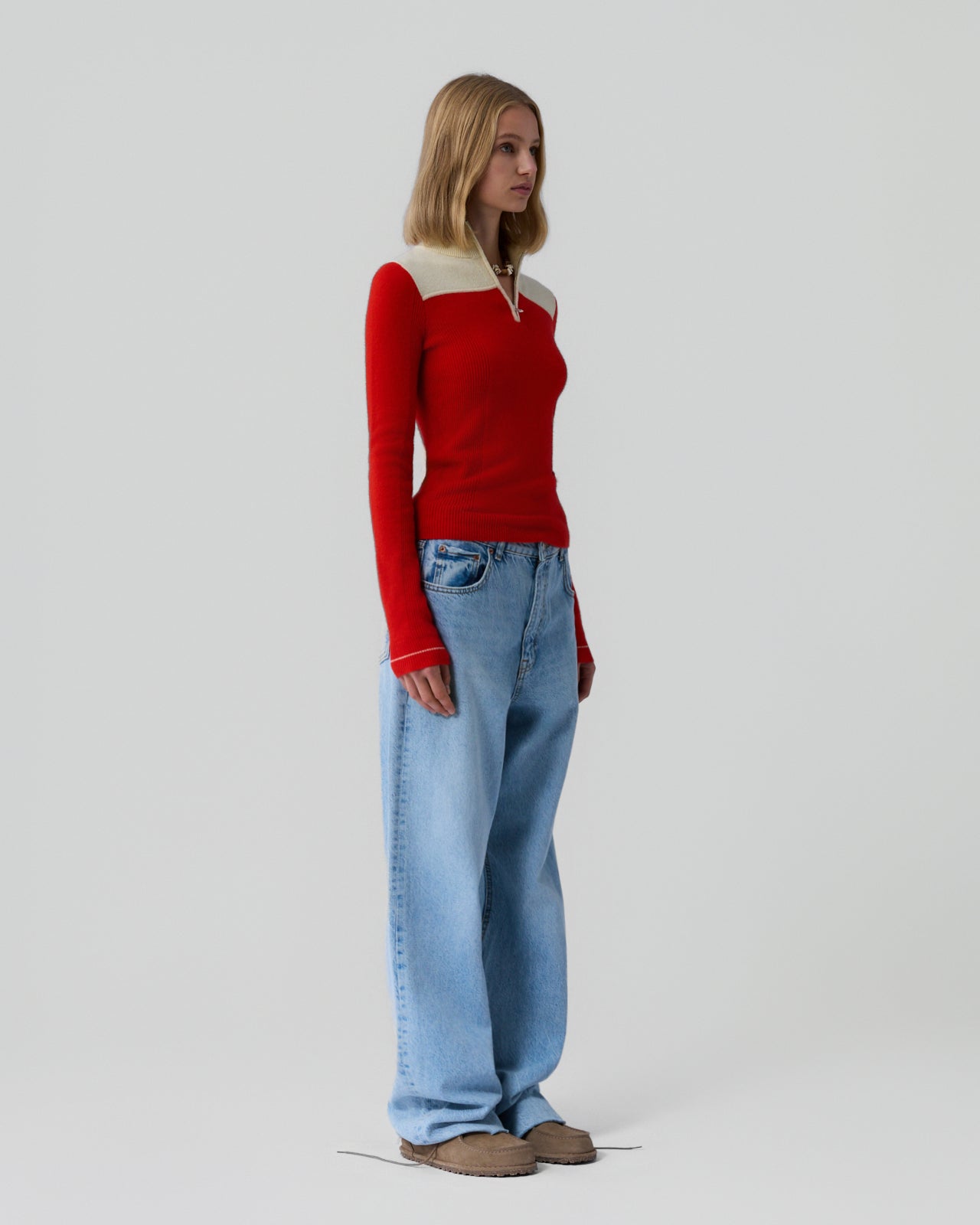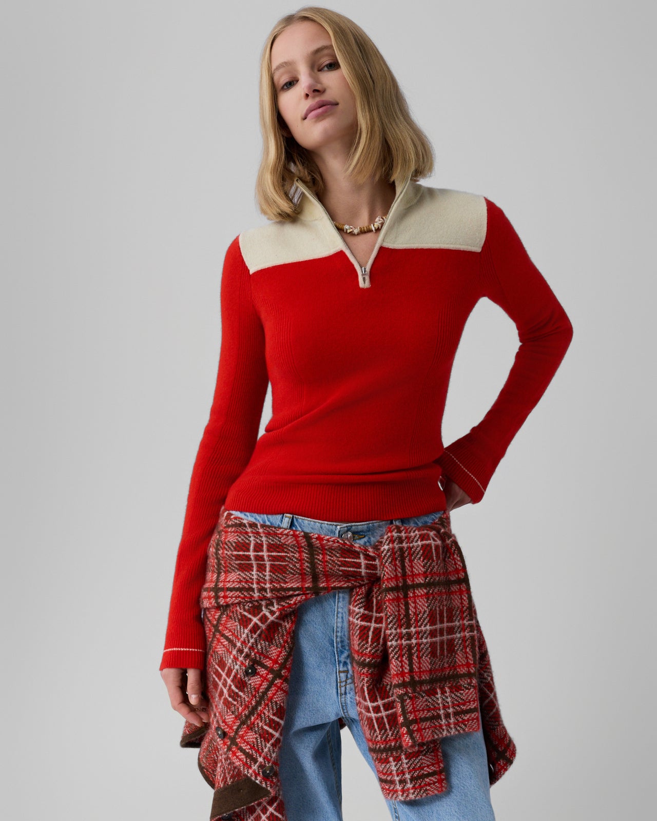The Alpine Half Zip brings a retro ski feel to a fitted, lightweight 100% cashmere knit. With bold pops of color and a sleek zip neckline, this women’s cashmere sweater layers perfectly or stands strong on its own.