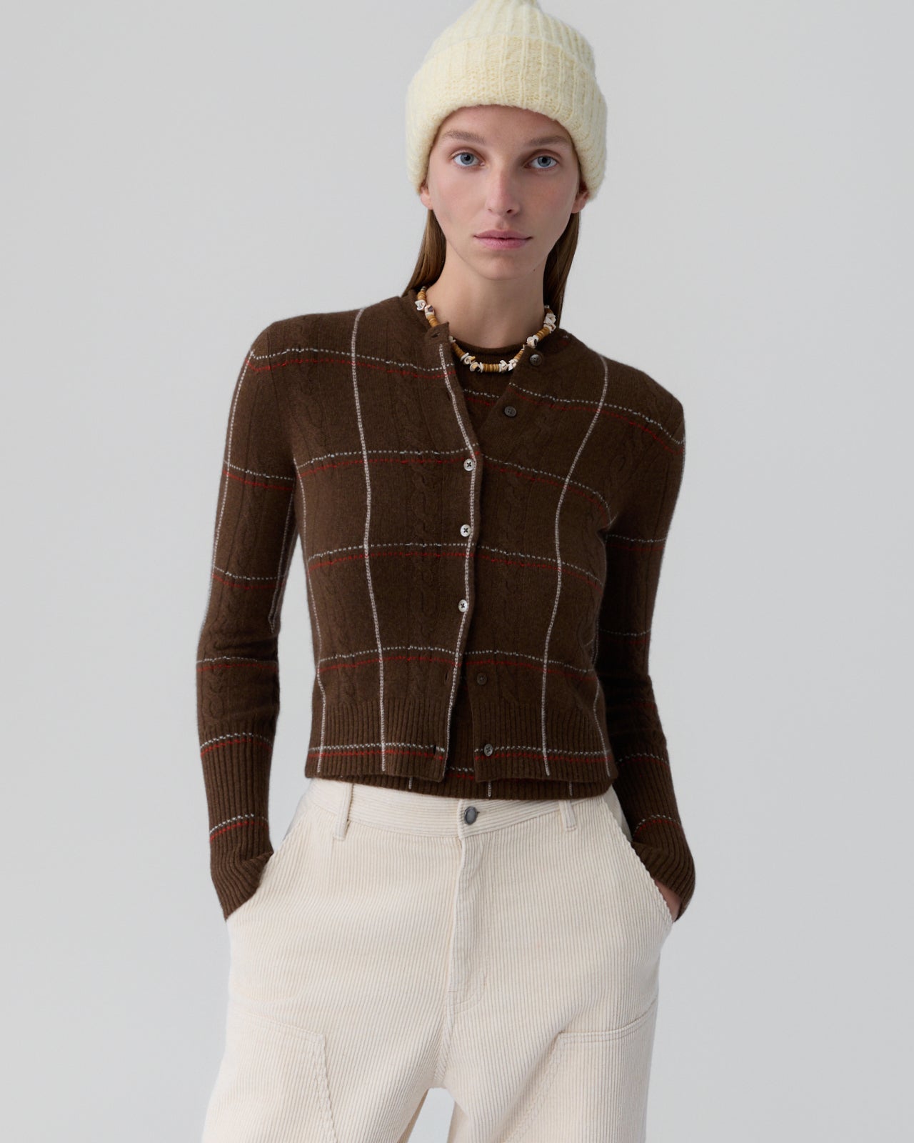 - LIGHT-WEIGHT CABLE CHECK CARDIGAN