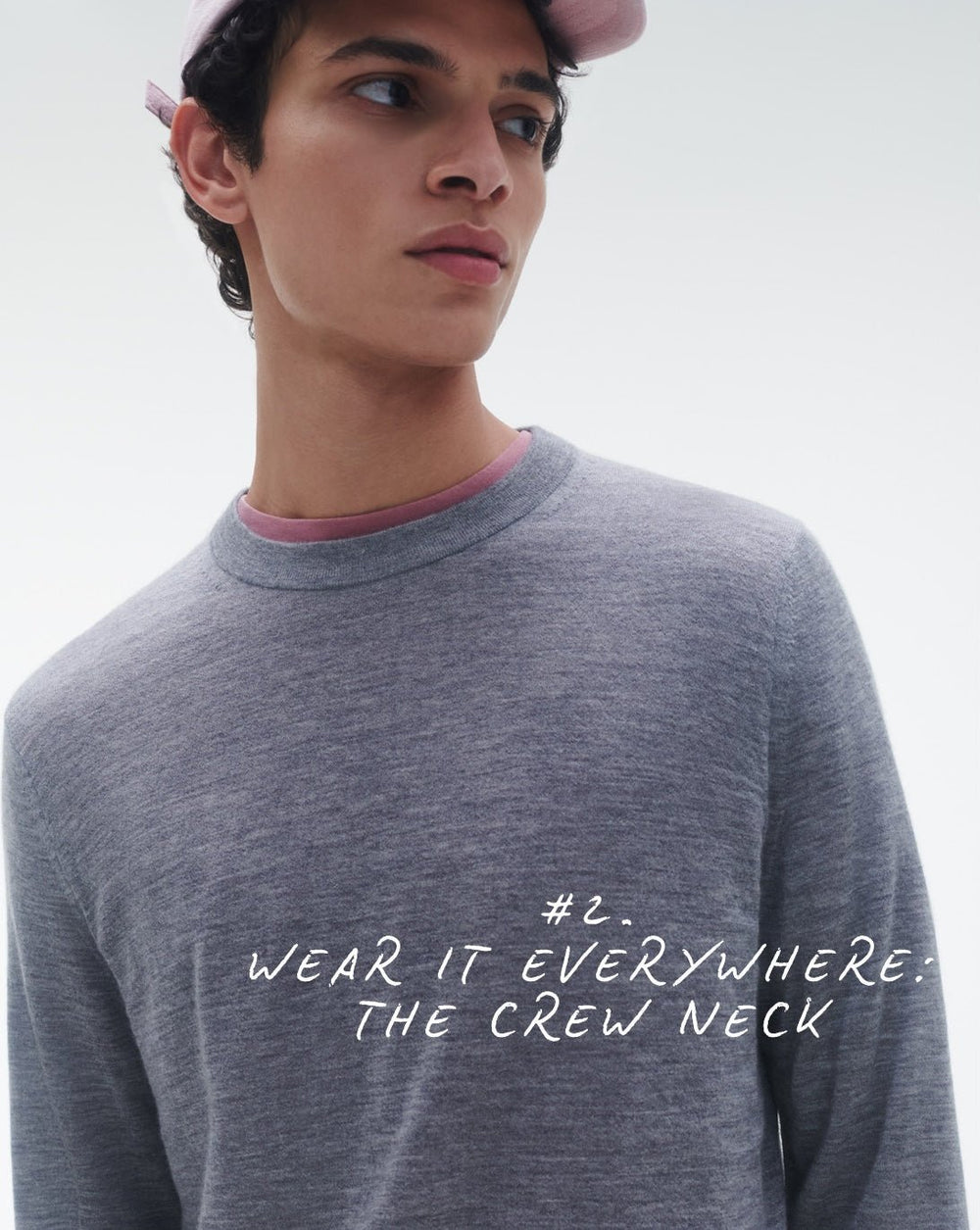 • Airy True Crew - Heather Grey men's lightweight cashmere crew neck sweater with ribbed trim and classic fit.