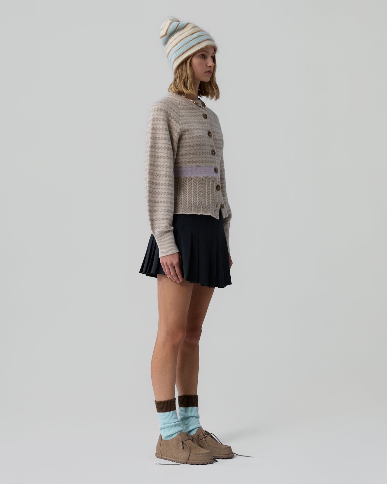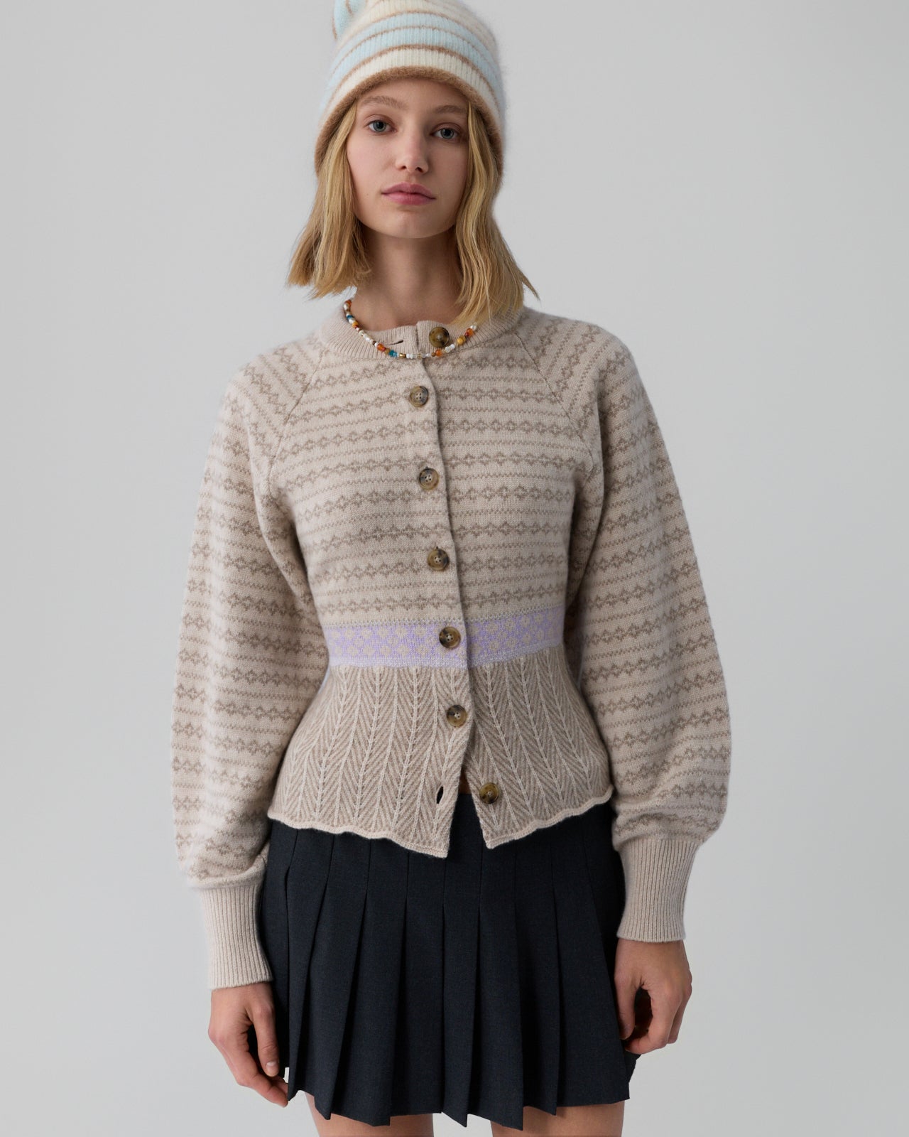 Fair Isle Sculpted Cardigan - Sandstone Combo